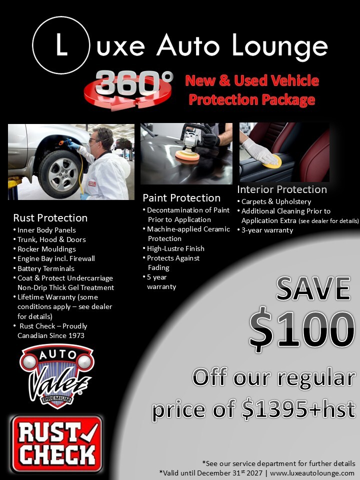 The key to the continued success of our protection package lies in the annual re-application of all three products. One of the issues surrounding traditional paint sealant and rust-proofing products is that they do not provide long-term protection. Oftentimes tar-based rust-proofing products will crack and dry out, leaving your vehicle susceptible to rust and corrosion. Although highly advertised, the same can be said for electronic 'rust modules' which are also completely ineffective in preventing the formation of rust and corrosion. Other traditional products such as 'paint sealants' also do not provide proper protection for your vehicle's paint with only one application. For information on pricing and availability, please contact our sales department.