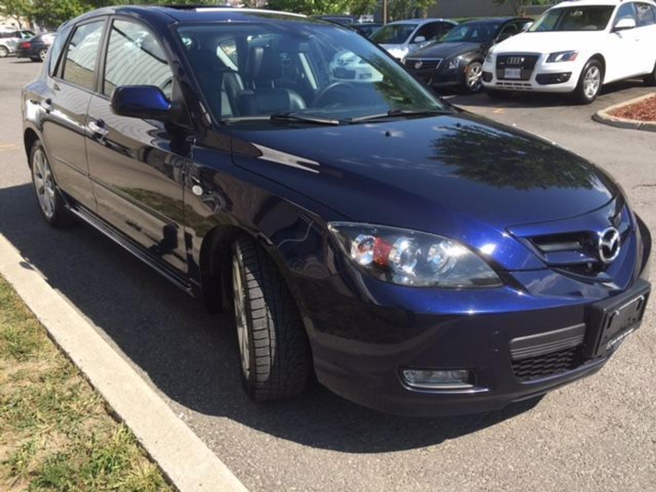 WOW SUPER RARE!!! HARD TO FIND!!! ONLY 87,000KM!!! CLEAN CARPROOF!! This 2009 Mazda3 GT Sport hatchback is a fresh trade-in from a local Mazda dealer! This is the LOADED GT model with Luxury Package which includes: power sunroof, power driver seat, heated leather seats Bose audio system, Sirius satellite radio, HID Xenon headlights, 6-disc CD/MP3 changer, and more!! Luxe Certified pre-owned incl.: 180-point inspection & reconditioning, complete clean-up & detailing, carproof history report, 3-month/5000km warranty with roadside assistance & full tank of fuel! Priced at ONLY $99 bi-weekly with $0 down for 48 months @ 7.89% APR (Cost of borrowing is $1705) OR cash purchase price of $8501 (both prices plus HST, $5 OMVIC fee & licensing/fees).
